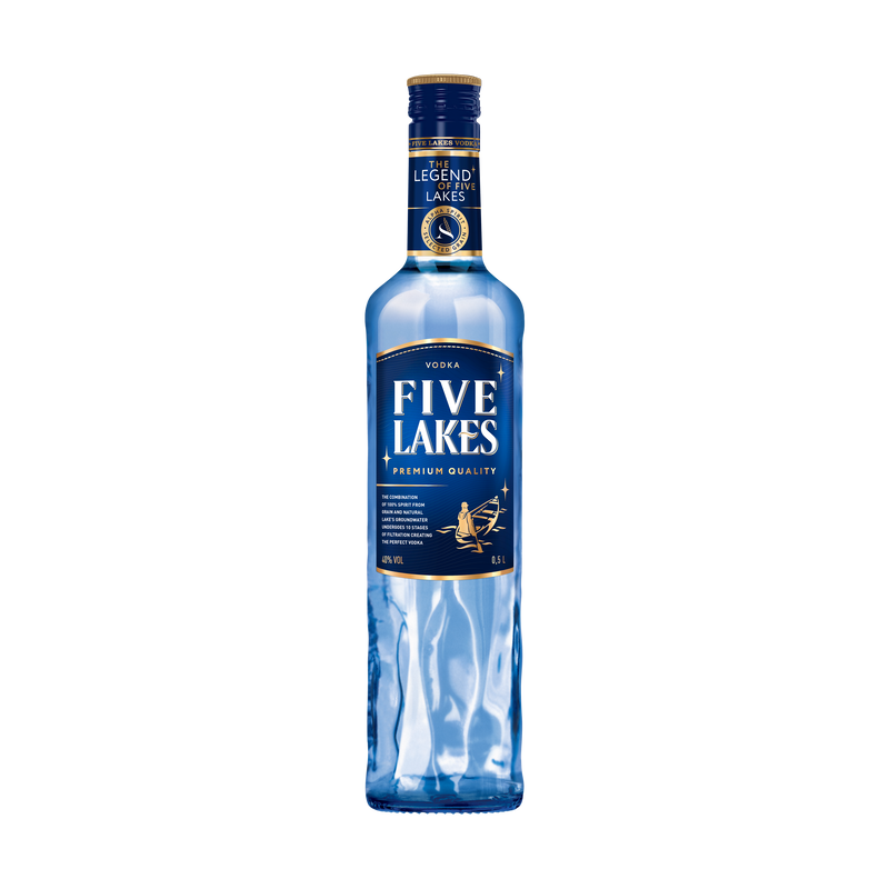 The soft water used for Five Lakes vodka production comes from natural lakes. Thanks to the balanced natural water in the composition, selected grain spirit, natural ingredients and high standards of quality control, this vodka has a balanced taste and soft aftertaste with extra smooth finish.